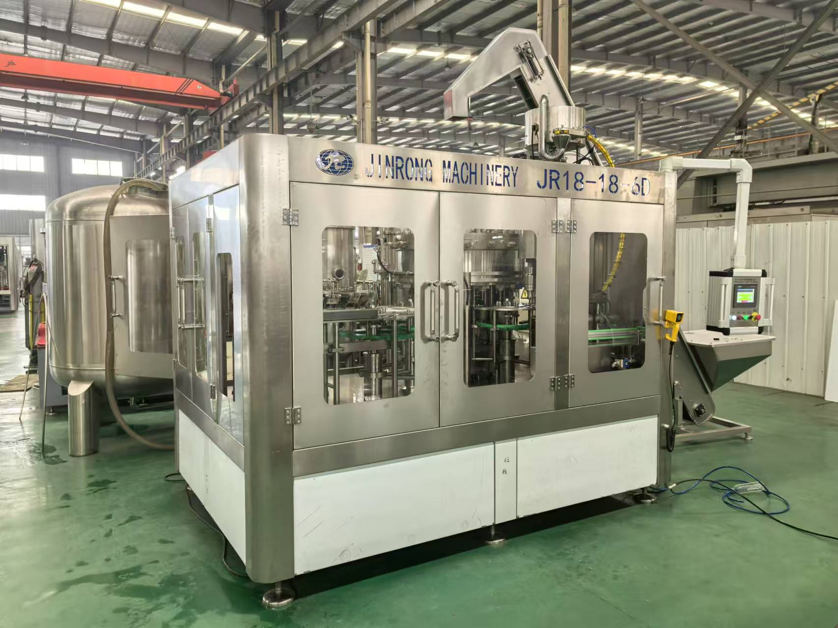 金榮機械主導產(chǎn)品有沖瓶灌裝旋蓋三合一機組、灌裝旋蓋二合一機組、灌裝封口二合一機組、全自動吹瓶機、加侖桶裝系列機組、水處理生產(chǎn)線、自動就地清洗系統(tǒng)、各種殺菌成套設備、沖瓶灌裝封口生產(chǎn)線、果汁果茶飲料成套設備等